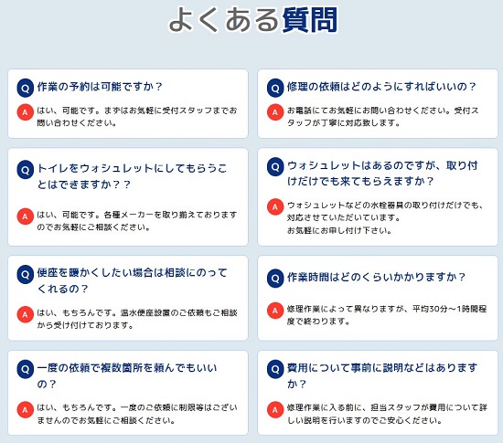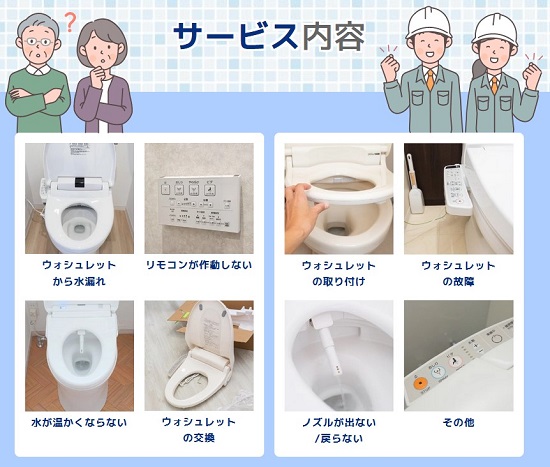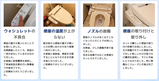 横浜市で対応可能な温水便座、ウォシュレットの修理サービスとなります。その他のトラブルやご相談に関しましてはお気軽に受付窓口までお問い合わせください。